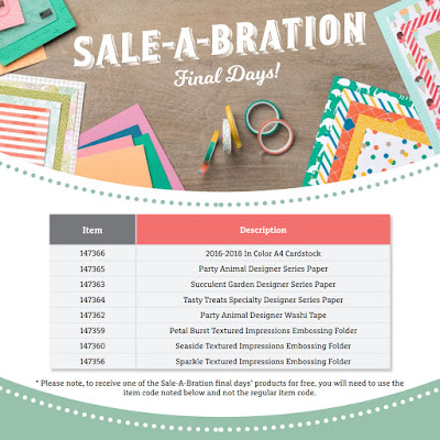 Don't forget that it's an awesome time to join Stampin' Up! In addition to products of your choice in the starter kit, you can choose 2 additional free stamp sets of your choice. Offer ends 31/03. Enjoy the demonstrator perks of at least 20% discount, being the first to see the new catalogues, a quarterly magazine, team get togethers and swaps. Such fun!