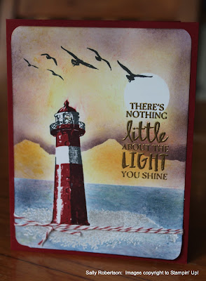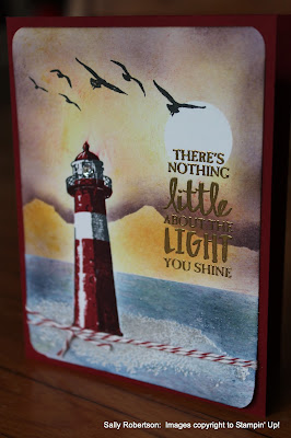 I'm so pleased that the 'High Tide' set continued into the new annual catalogue. It lends itself to some beautuful sea scenes. Today's share is a card I taught earlier this year. It is CASED from Tina Zinck 'The Serene Stamper'. Her creation can be found here
