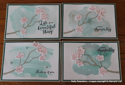 'Colorful Seasons' is a new set and it is just stunning. I throughly enjoyed making these cards, which are CASED from Jessie Holton. The sympathy sentiment comes from Rose Wonder.